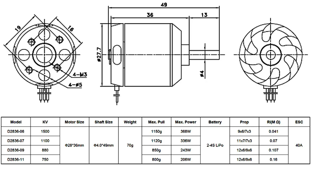 Motor size: 28*36mm